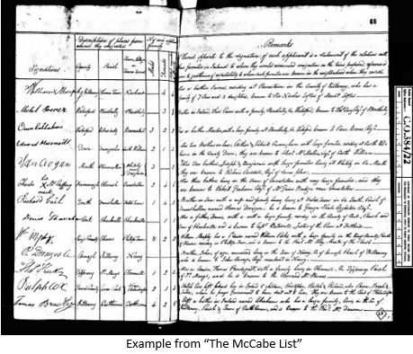 Timeline Genealogy in Ireland, “Two Unusual Irish Emigration Records” by Dr. Robert Somerville Woodward [no date] (https://timeline.ie/irish-emigration-records/: accessed 9 March 2023).